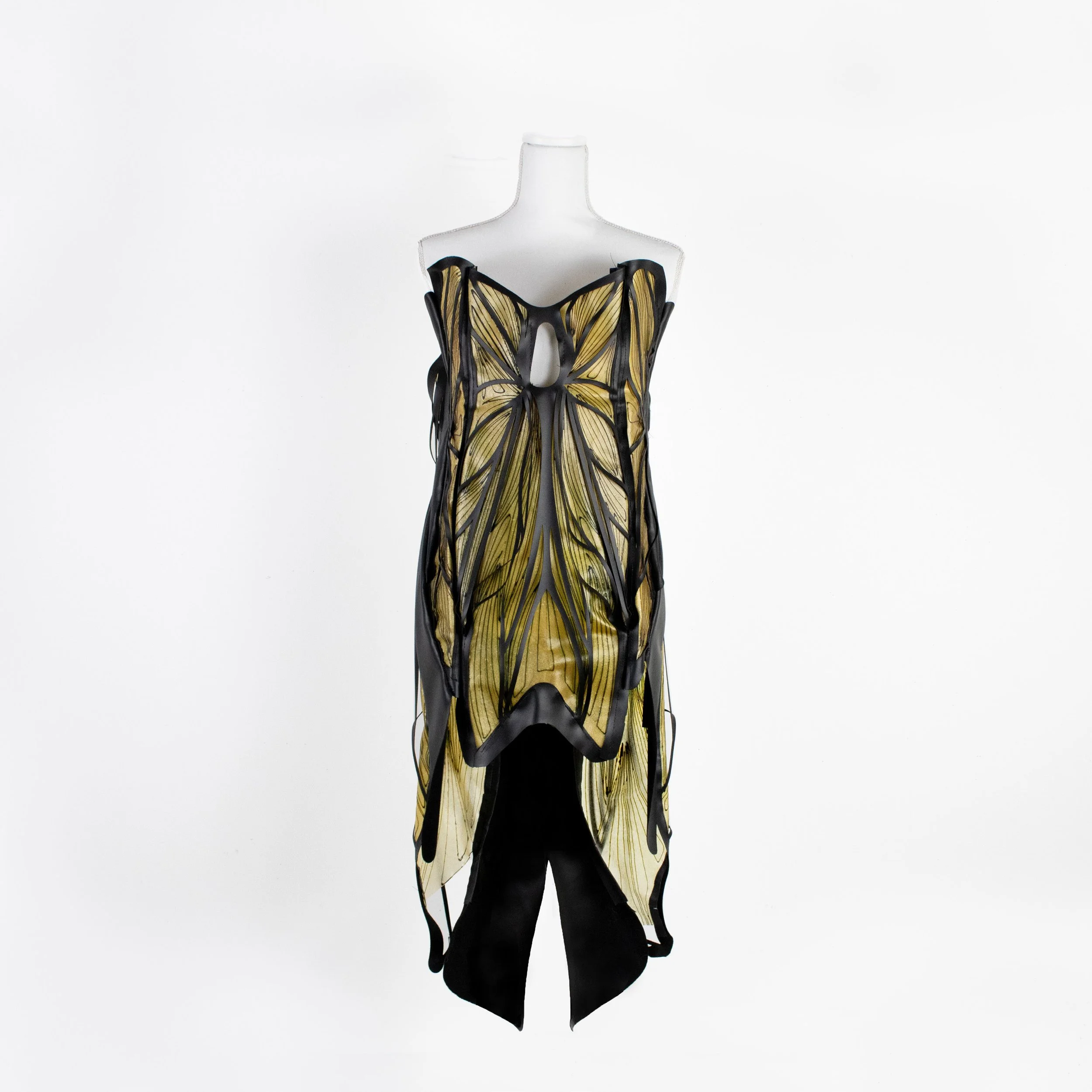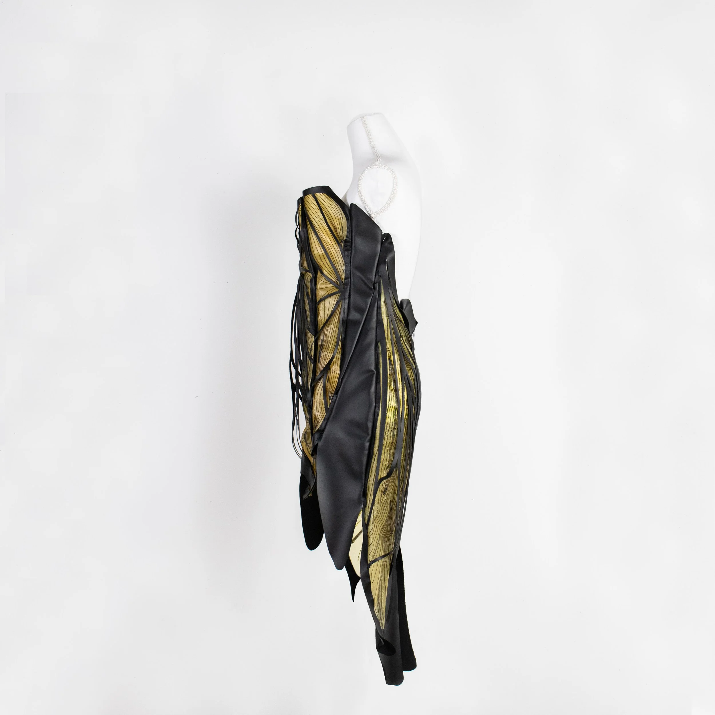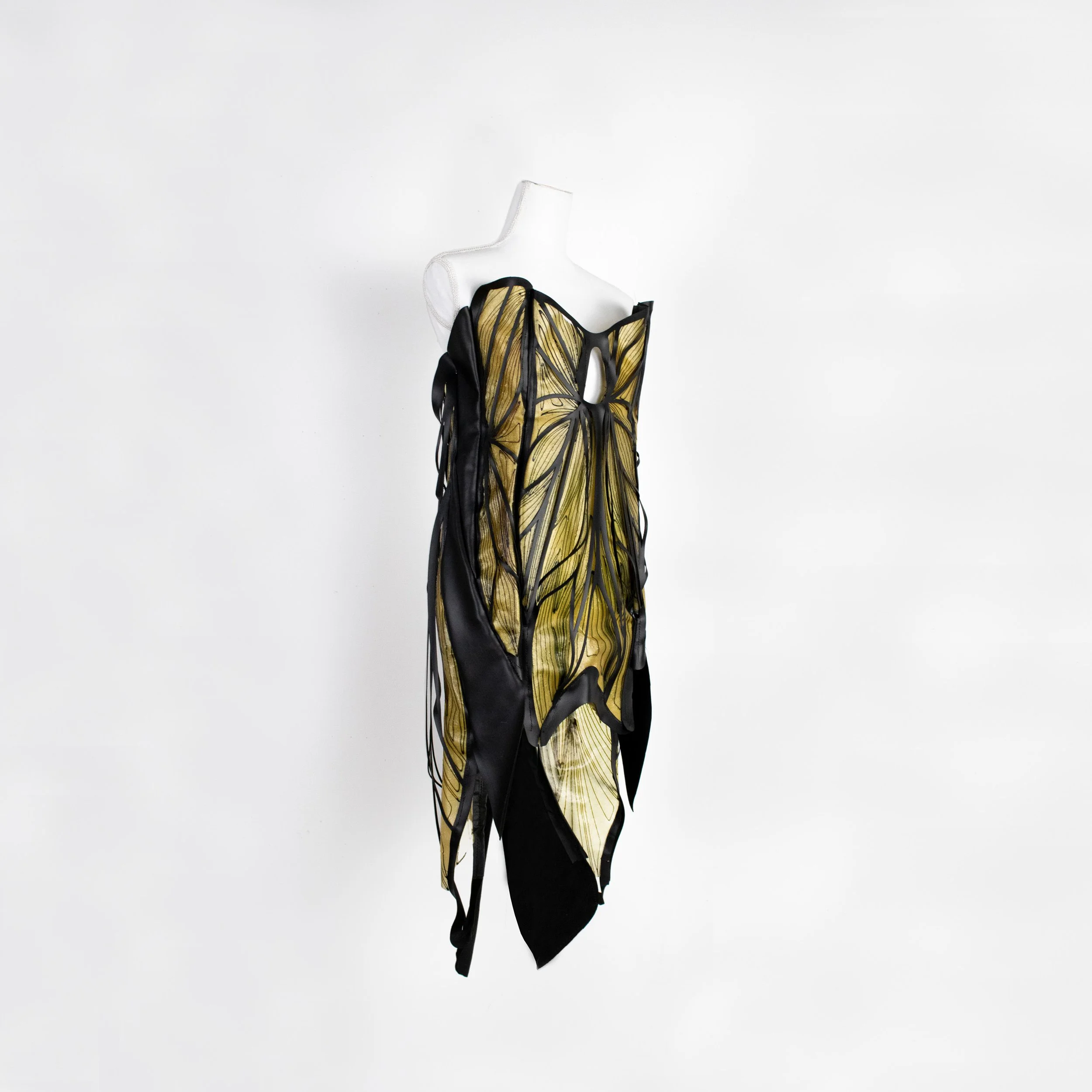 Being inspired by Iris Van Herpen’s work, the garment was designed following ideas of organic lines with layering and framing.